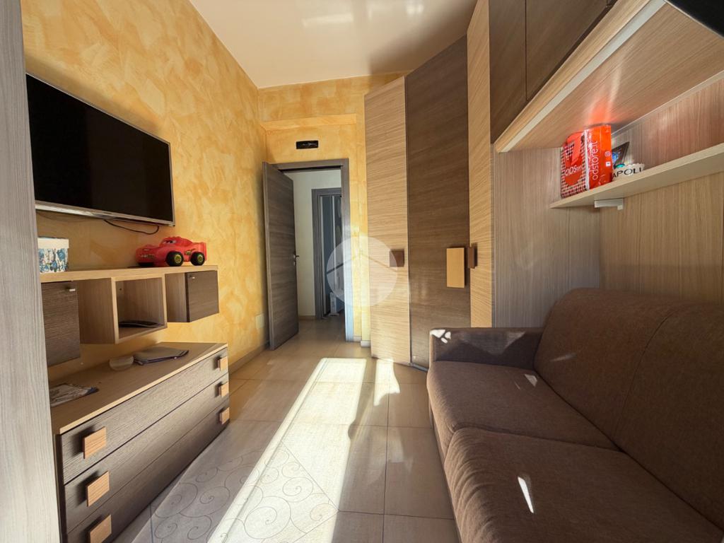 L’ingresso apre su una zona giorno luminosa, con soggiorno e cucina abitabile a specchio, con doppio punto luce. Gli ambienti risultano pratici e accoglienti, perfetti per la vita quotidiana. La zona notte, ben disimpegnata, ospita una camera matrimoniale, due camerette, due bagni e un ripostiglio che risolve ogni esigenza di ordine.